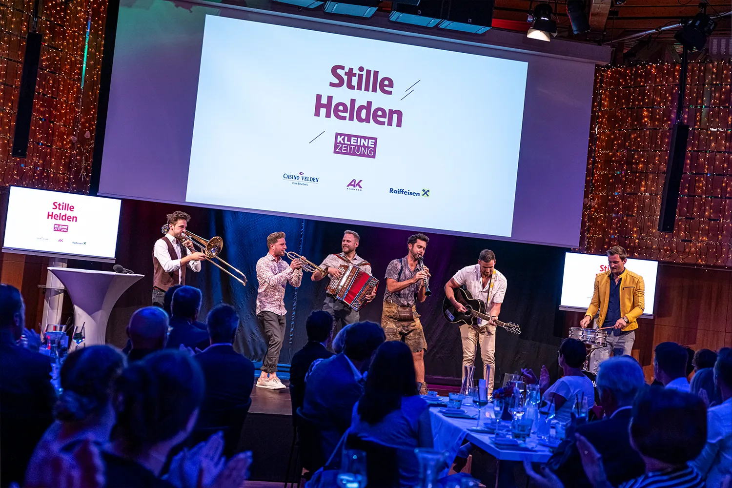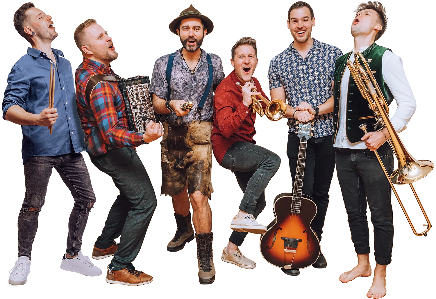 Wir sind sechs junge Musiker aus Kärnten in Österreich, die mit Herzblut und Kreativität auf der Bühne stehen um gemeinsam Musik zu machen. Ob unplugged bei Straßenkonzerten, bei Musi- oder Zeltfesten, als Showact bei Galaabenden oder Firmenevents – wir l(i)eben die Vielseitigkeit.